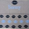Flower Many names blanket has your child’s name repeated with 2 rows of flowers across the bottom.